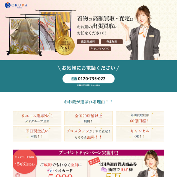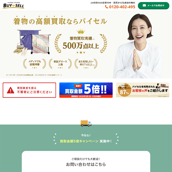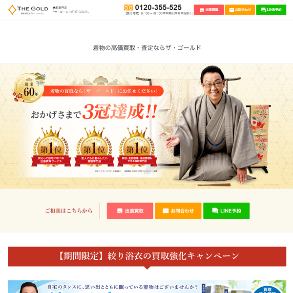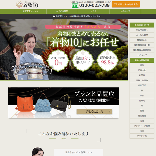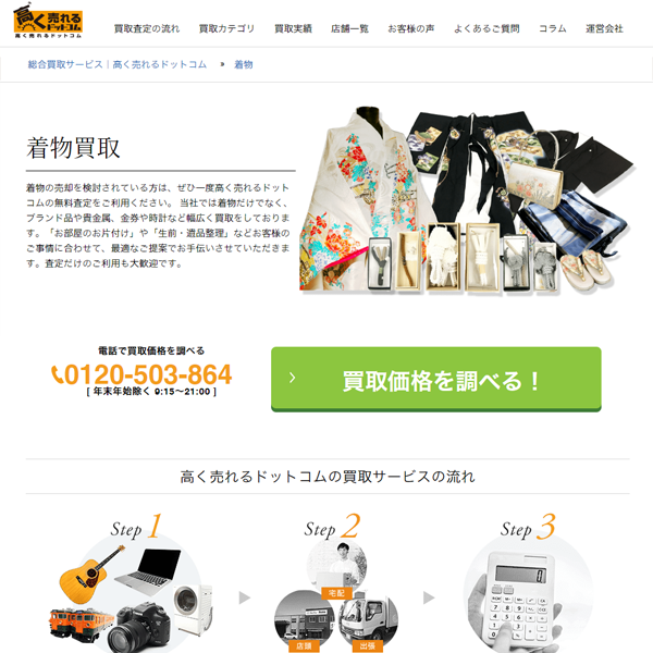 取り扱いジャンルが多彩、年間査定数15万件以上!丁寧な接客対応で高評価を得ている大手の着物買取業者